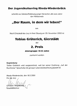 - Jugendkulturring Rheda-Wiedenbrück „Der Raum, in dem wir leben!“, Urkunde