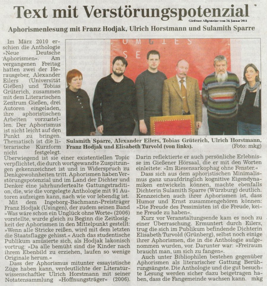 Literarisches Zentrum Gießen: »Toller Abend rund um ›Neue Deutsche Aphorismen‹ im LZG«