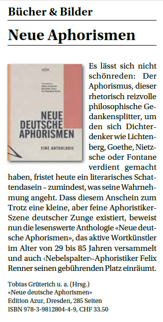 Michael Bittner: »Lesetipp: Neue deutsche Aphorismen«