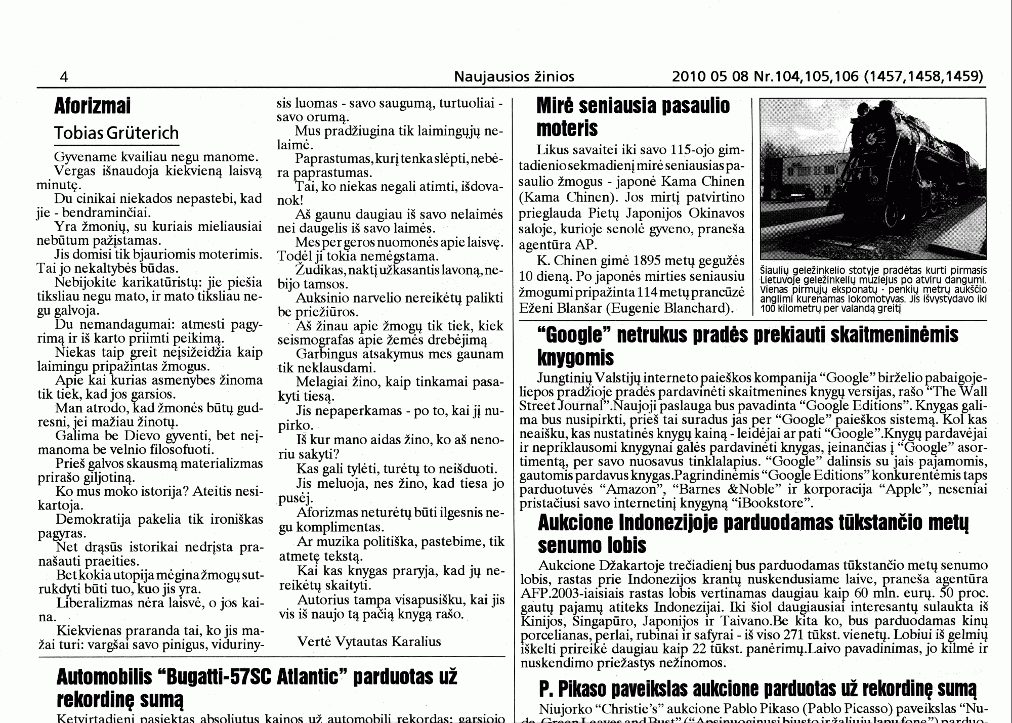 8. Mai (lesen) und 10. Juli 2010 [jeweils von Vytautas Karalius ins Litauische übersetzt; 36 bzw. 25]