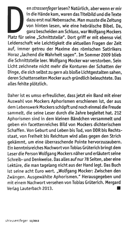 Der langjährige Eulenspiegel-Autor Wolfgang Mocker (1954–2009) war einer der besten zeitgenössischen Aphoristiker.